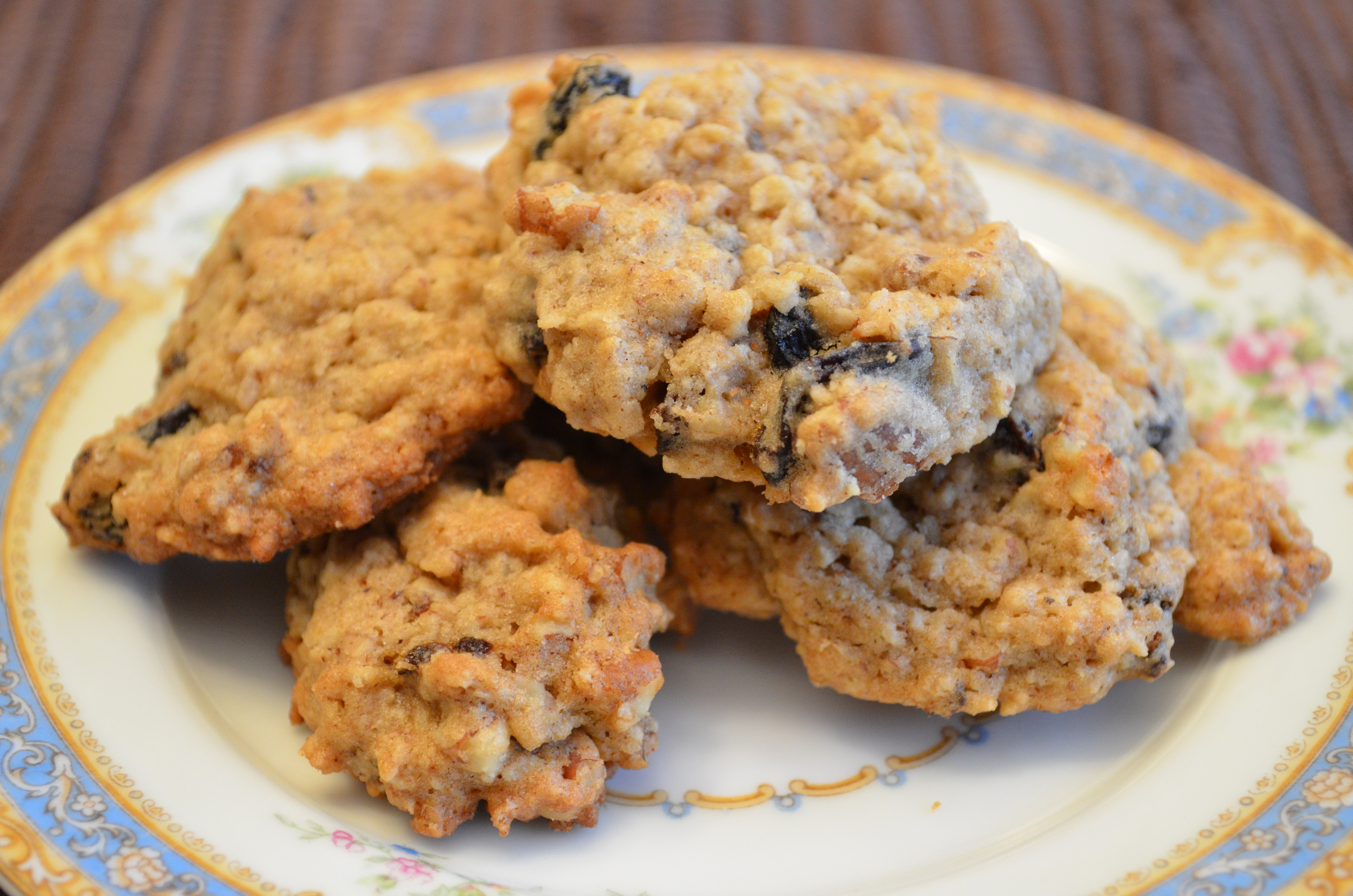 This is a great recipe for oatmeal cookies that includes raisins and nuts. The cookies are thick and chewy but don’t cook them too long in order to preserve the soft texture.