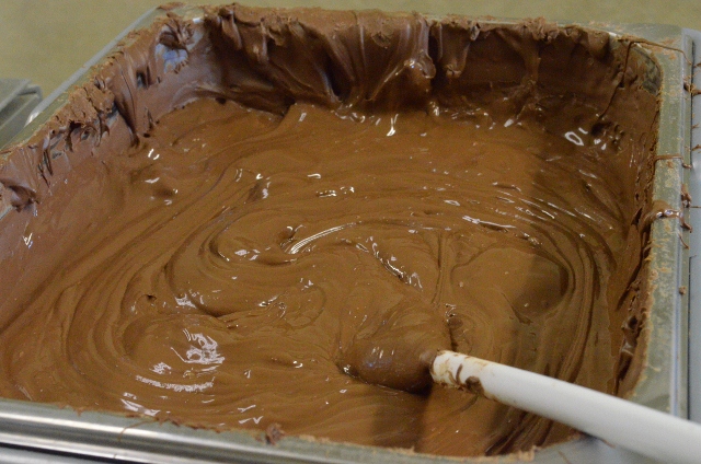 It all starts with pans of chocolate. Then the creativity begins with nuts, creams, and all types of variations.
