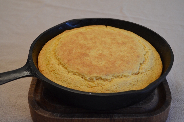 One question that comes up with cornbread lovers is sugar or no sugar? With my family it is definitely no sugar in cornbread. Putting sugar in cornbread would be sacrilegious. Also, cornbread is not cut in squares. It is cut in wedges… unless you are my husband who grew up in New York state and used to horrify my mother by cutting off slices on the edge in order to get a lot of crust.