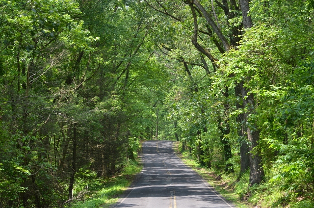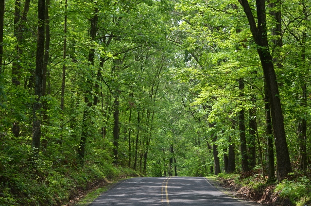 One enjoyable aspect of the daily drive to work and back is the section of the road where the overhanging trees meet. This time of the year it is like driving through a green tunnel and it provides welcome relief when the hot summer weather arrives. In the fall, the “tunnel” turns into a yellow and gold. Another shot of the road….