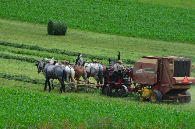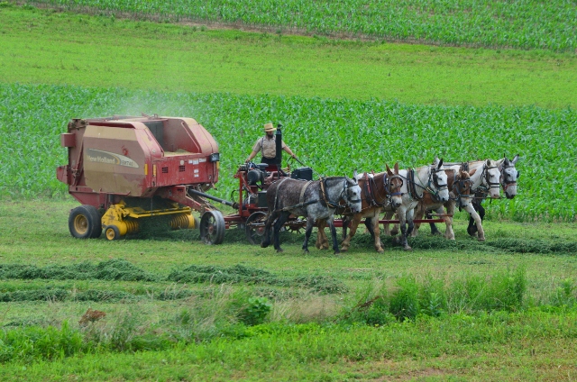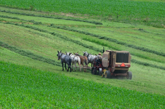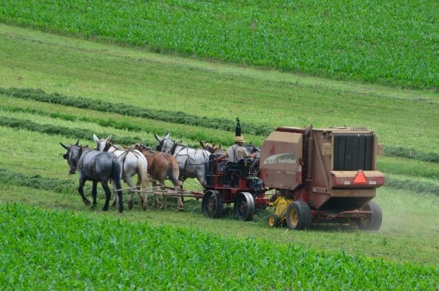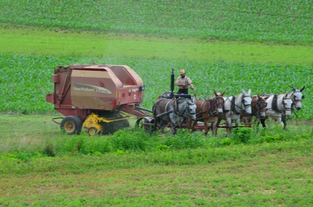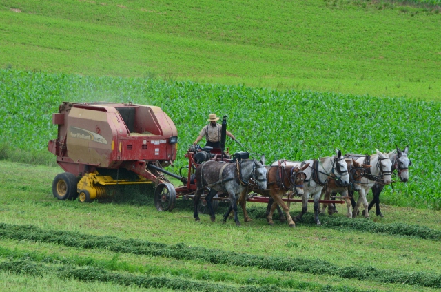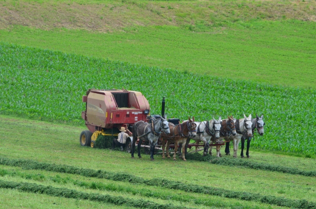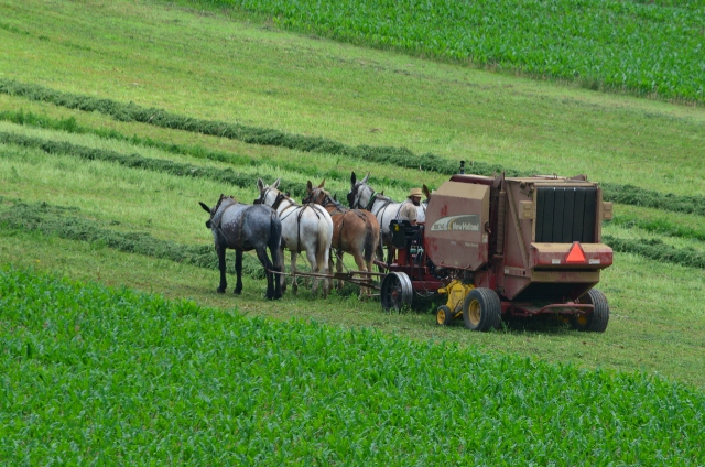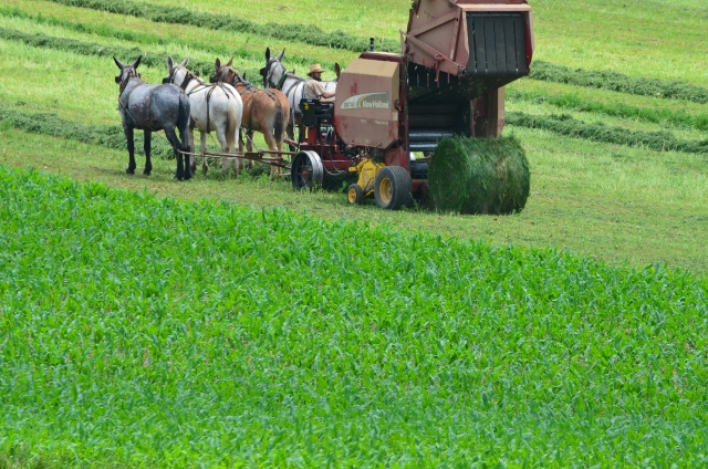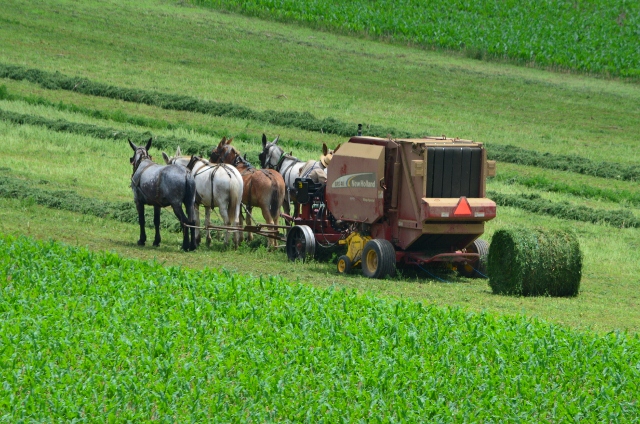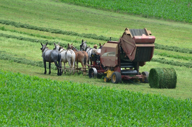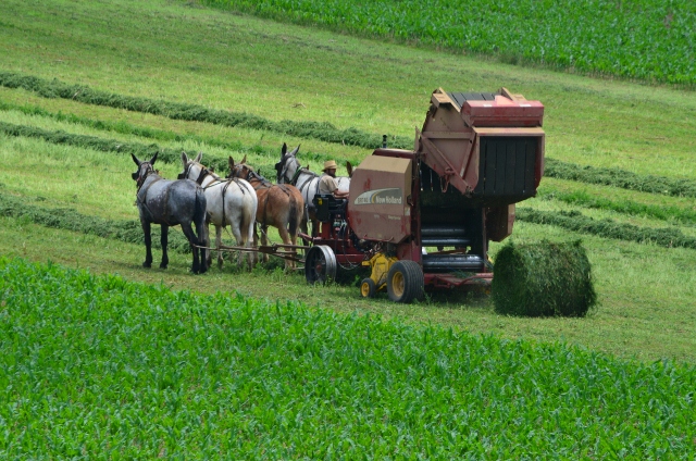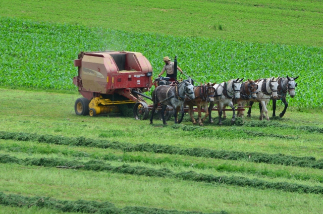 Here are some photos of a local Amish farmer baling hay.