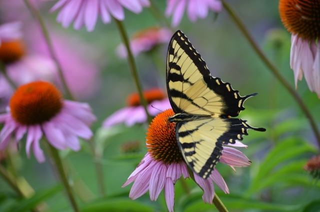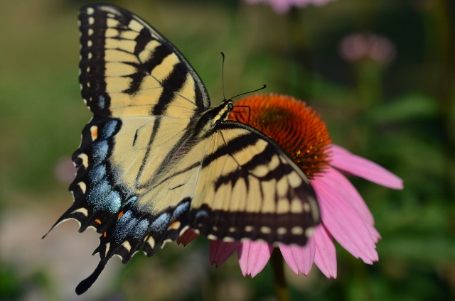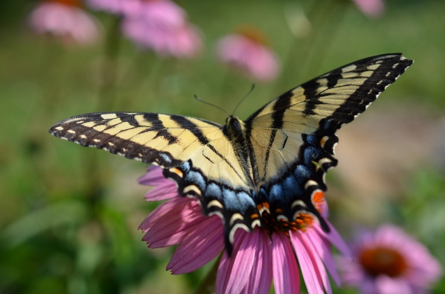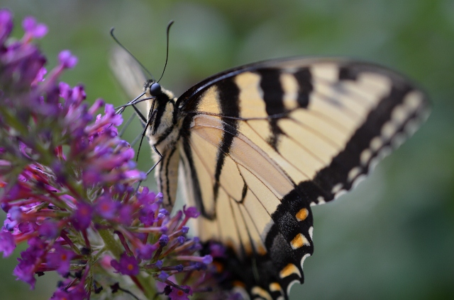The Eastern Tiger Swallowtail butterfly(Papilio glaucus) is one of the most common and easily identified butterflies. With the bright yellow color and distinctive stripes, it even has an easy-to-remember name.