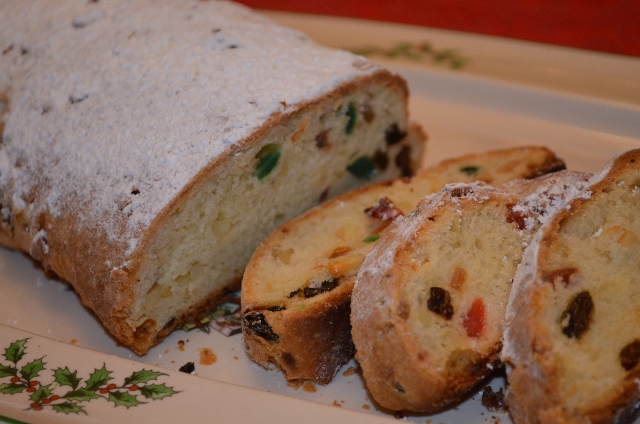 Stollen was a Christmas staple for my German mother-in-law. I continue to make stollen yearly for my husband which he enjoys with a generous dollop of butter and a cup of coffee. The recipe below makes two large loaves. Rather than two large loaves, I divide the dough into four parts and make three smaller loaves so I have some for gifts and I use one part to make a cinnamon loaf. For the cinnamon loaf, after rolling out, I smear with butter, sprinkle with cinnamon/sugar and roll up. It can be baked as a loaf or cut into rolls. Nuts are always good to add and top with a powdered sugar glaze.