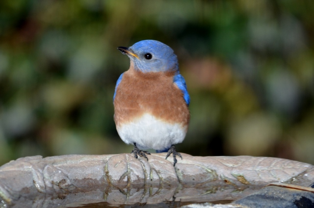 One of the joys of winter in our area is the profusion of Eastern Bluebirds. Once rare, the bluebirds have made a comeback in the last 20 years as residents construct bluebird trails and conserve natural areas. The bluebirds are year-round residents but tend to stay in the woods in the summer. Once the cold weather hits, all it takes are some mealworms in the feeders and the bluebirds suddenly appear. And if the feeder is empty, they will sit on the pole staring at you until you come out to add more worms. And from the photo above and below you can see that they argue a lot about the mealworms. And don’t forget the fresh water for the birds in the winter – in our area, we have to add a heater to the bird bath to keep the water ice free. Enjoy our winter touch of blue.